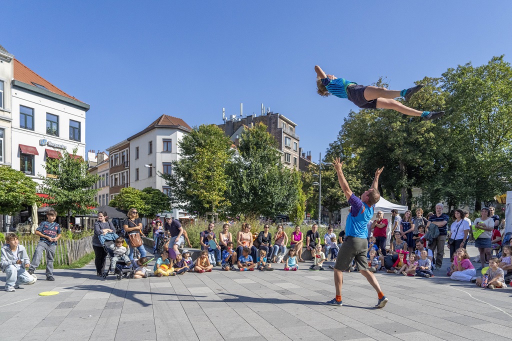 Dit is geen show… maar een andere kijk op de ruimte om ons heen! Een knipoog om ons eraan te herinneren dat muren niet alleen obstakels zijn, maar ook kunnen worden omgetoverd tot een prachtige speeltuin. En vooral dat de ruimtes die ze omringen geschikt blijven voor ontmoetingen…